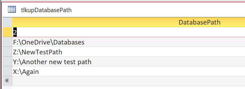 Type in the correct path address in the bottom line, and click the X at upper right to close the table. Now, back on the Select Path form, open the combobox again and select that new address. If no failure message appears, you are properly connected and ready to open the EMR. (If the failure message does appear again, it indicates that there is something wrong with the path address you entered. Just try the same procedure again until you have the correct path entered).